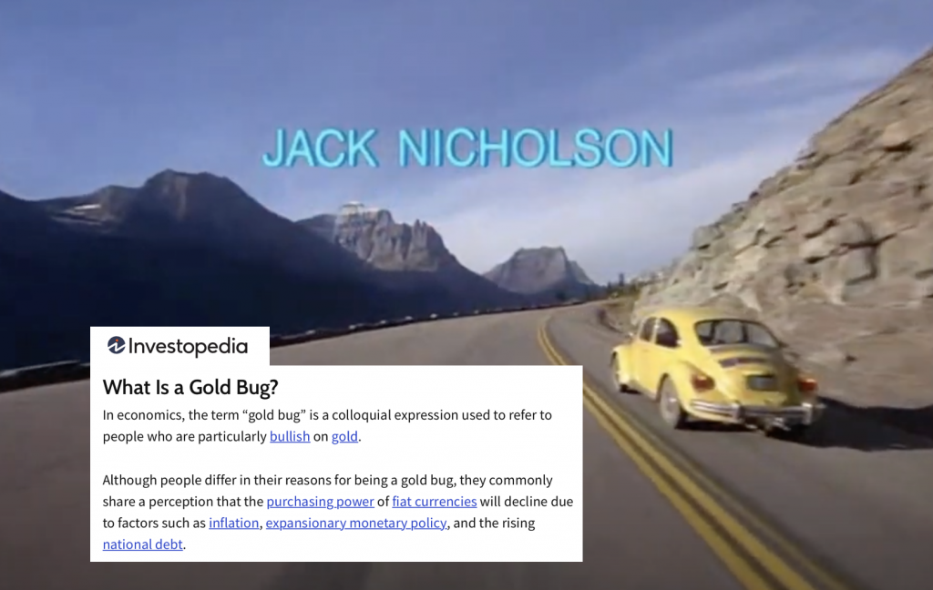 Ager points out that Kubrick owned gold and also recommended gold to his friends. On hearing this, I realized that Kubrick was a “gold bug,” a well-known economic term describing someone who views gold as a store of value, a way to hedge against the depreciating value of the dollar, and this may have been the reason he changed the family’s red Volkswagen beetle to a yellow one.