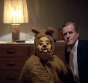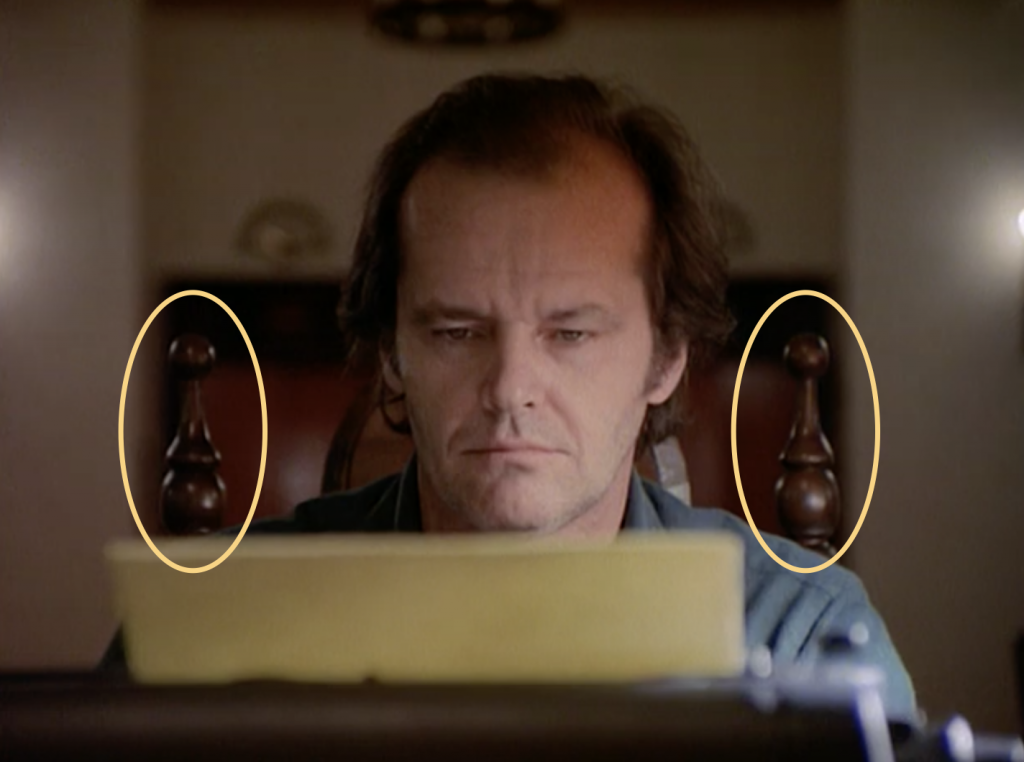 Here, most analysts of the film believe the man on the left is wearing a bear costume, relating to Danny’s bear pillow, suggesting sexual abuse. But I don’t see the face of a bear.