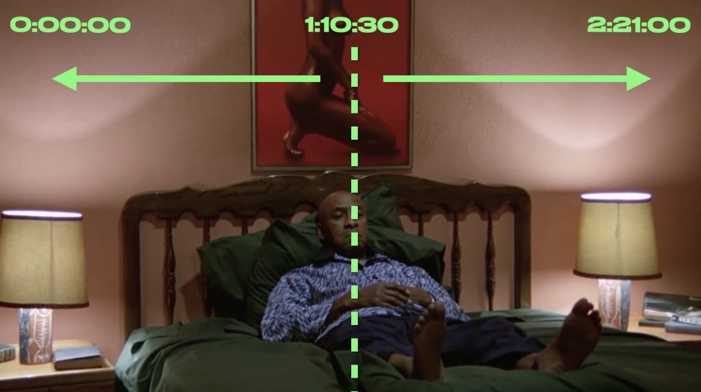 Looking at the film in this way places emphasis on the film’s exact center, what I would call the film’s mese, a term from the ancient Greek used in music to describe the center of a certain scale, or the central string of a lyre. I find a lot of meaning, both symbolically and structurally in the concept of the mese or the center, and I find the mese symbolism and structure at work in The Shining — especially when the mese is ever so slightly off.