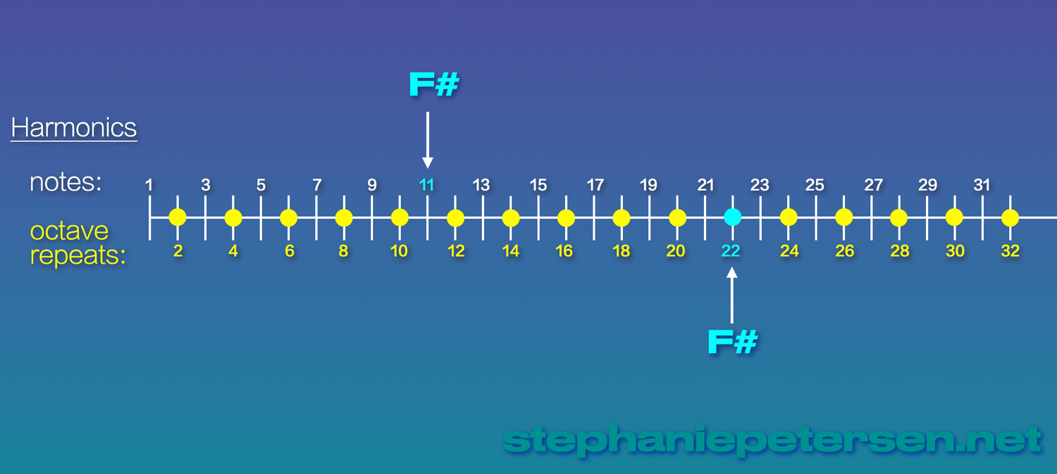 So, in the harmonic series, Harmonic 22 is the note of F# (it enters the series at Harmonic 11).