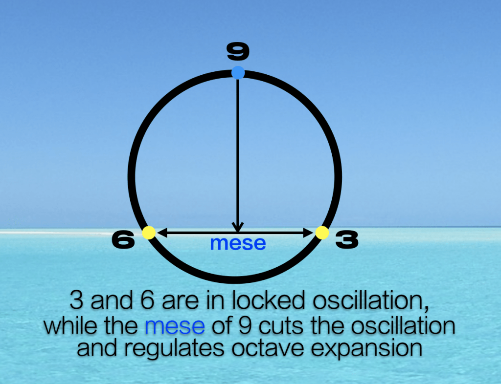 The number 6 is such a strange, overlapping number, because although it’s clearly based on the power of 3 (3-6-9), it’s a doubled (2) octave of 3, so it seems to straddle the powers of 2 and 3. It also produces a locked oscillation with the number 3 as they scale up through their octaves.